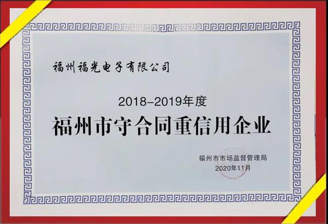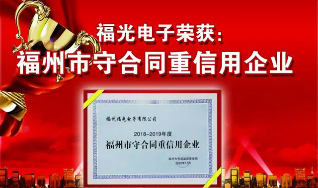 近日,福州PA電子官網有限公司收到由福州市市場監督管理局頒發“福州市守合同重信用企業”的榮譽稱號。