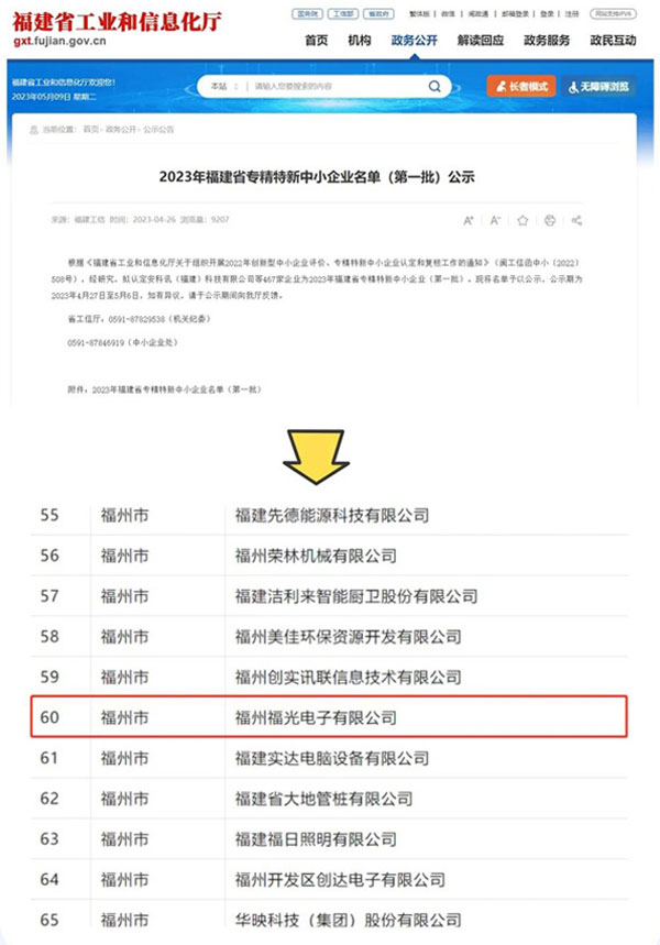 4月26日,福建省工業(yè)和信息化廳發(fā)布《2023年福建省專精特新中小企業(yè)名單(第一批)公示》,福州PA電子官網(wǎng)有限公司順利通過審核并且完成公示,被評為福建省“專精特新中小企業(yè)”和“創(chuàng)新型中小企業(yè)”兩項殊榮,這是政府部門對PA電子官網(wǎng)在電源檢測領(lǐng)域?qū)I(yè)度以及市場地位的認可,也是PA電子官網(wǎng)三十年來堅持創(chuàng)新的又一成果。