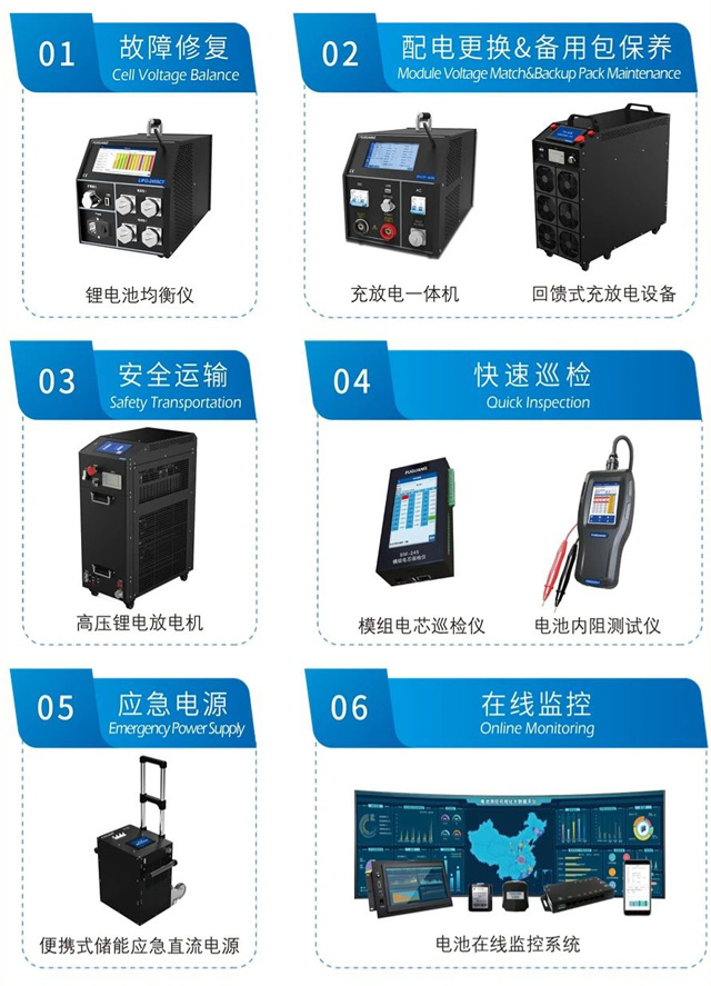 作為專業電池運維檢測儀器與設備的制造商,福光電子為儲能用戶及行業客戶提供6大類高效檢測與智慧運維方案。為儲能行業提供包括充放電測試、均衡維護、快速巡檢、應急保障、安裝運輸等智能檢測儀器與設備。