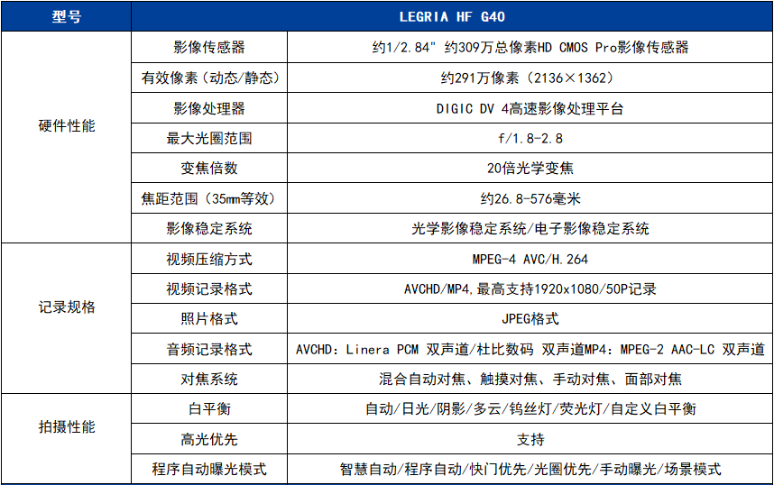 LEGRIA HF G40 輸電線路攝錄望遠鏡