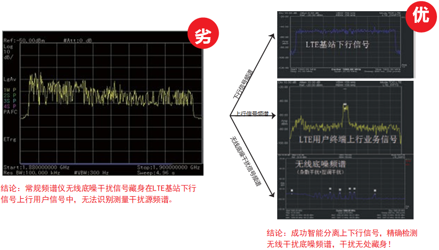 ● PA電子通過1鍵設置:實現上行,下行,底噪信號分離,不關閉同頻站即可實現 TD-LTE 干擾排查